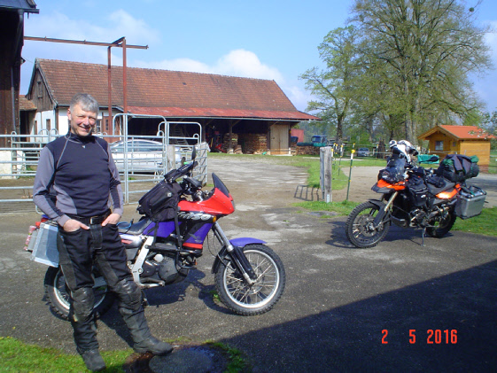 Danach sind wir einer am PC ausgearbeiteten Route bis nach Rothenburg o.d. Tauber gefolgt. Haben dort einen Kaffee getrunken und ob der Wolken die Regenkombis übergezogen. War auch nötig. Wir waren nicht lange auf der Autobahn, da fing es an zu schiffen. Und das bei 9 Grad C.