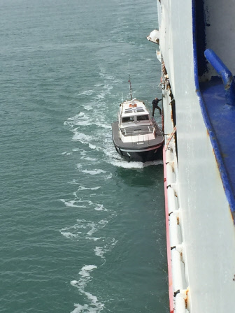 Der Lotse geht von Bord.